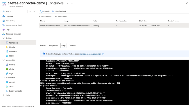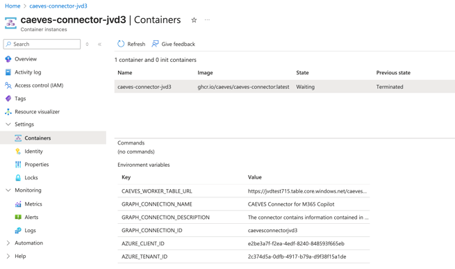 This article provides step-by-step instructions to manually deploy the CAEVES Copilot Connector in a Microsoft Azure environment as an Azure Container Instance (ACI). The ACI is provisioned manually through the Azure Resource Manager.