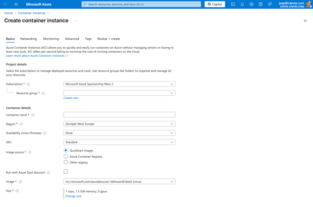 You can deploy an Azure Container Instance using the Azure Portal as outlined below.