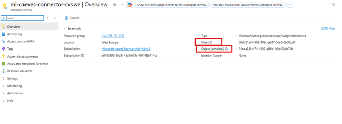 - On the same Overview page of the Managed Identity, copy the Client ID.