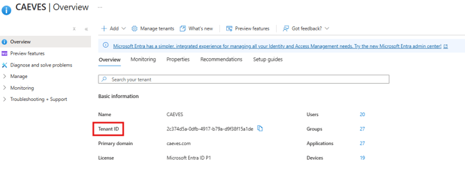 - Go to Azure Active Directory (Microsoft Entra ID) → Overview.